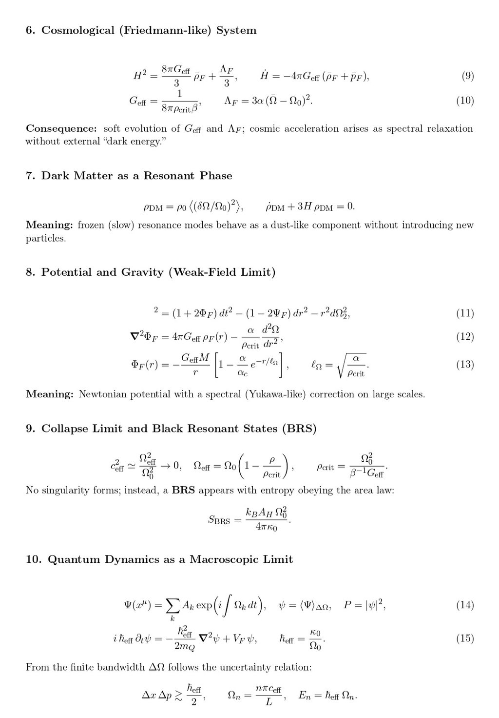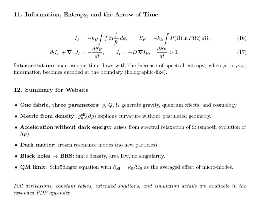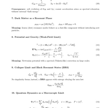 In the complete paper, every section is accompanied by rigorous derivations, comments on physical interpretation, and formal consistency proofs linking the theoretical, cosmological, and quantum domains.